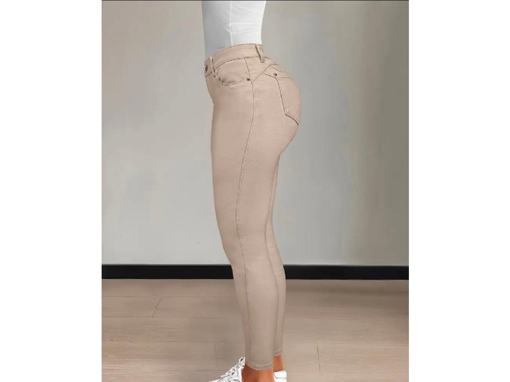 Elegantní béžové kalhoty s vysokým pasem jsou dokonalým spojením pohodlí a ženského stylu. Úzký slim-fit střih krásně kopíruje siluetu, zatímco pružný materiál se přizpůsobí postavě a zajišťuje maximální komfort po celý den.