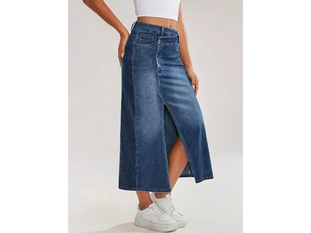 Džínová midi sukně se sexy rozparkem