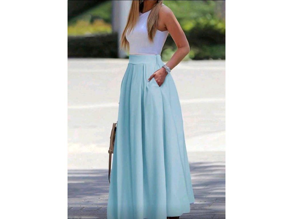 Elegantní dlouhá áčková sukně s vysokým pasem – bledě modrá