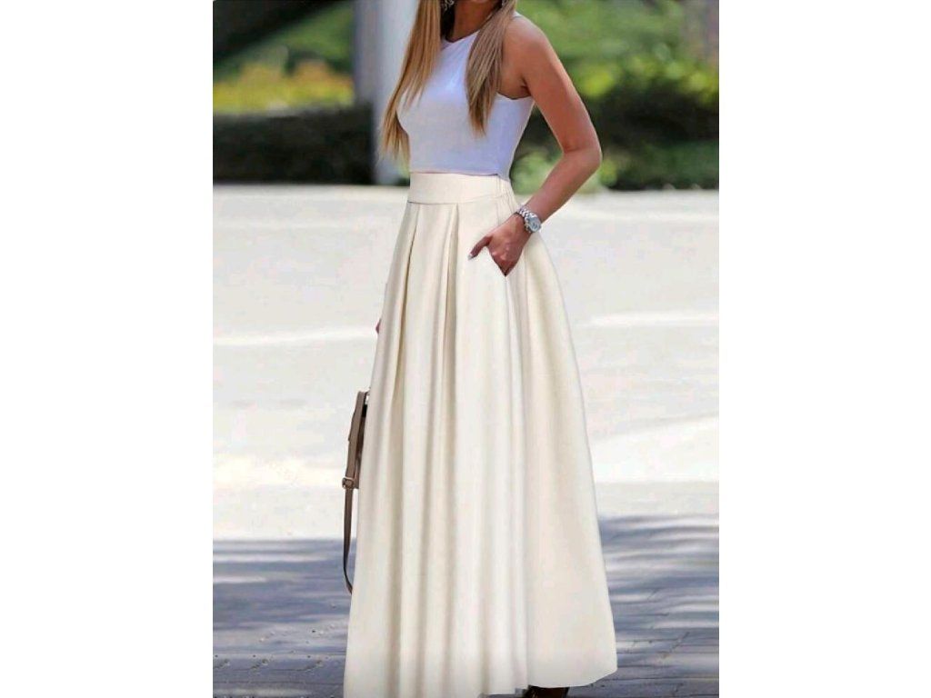 Elegantní dlouhá áčková sukně s vysokým pasem – krémová