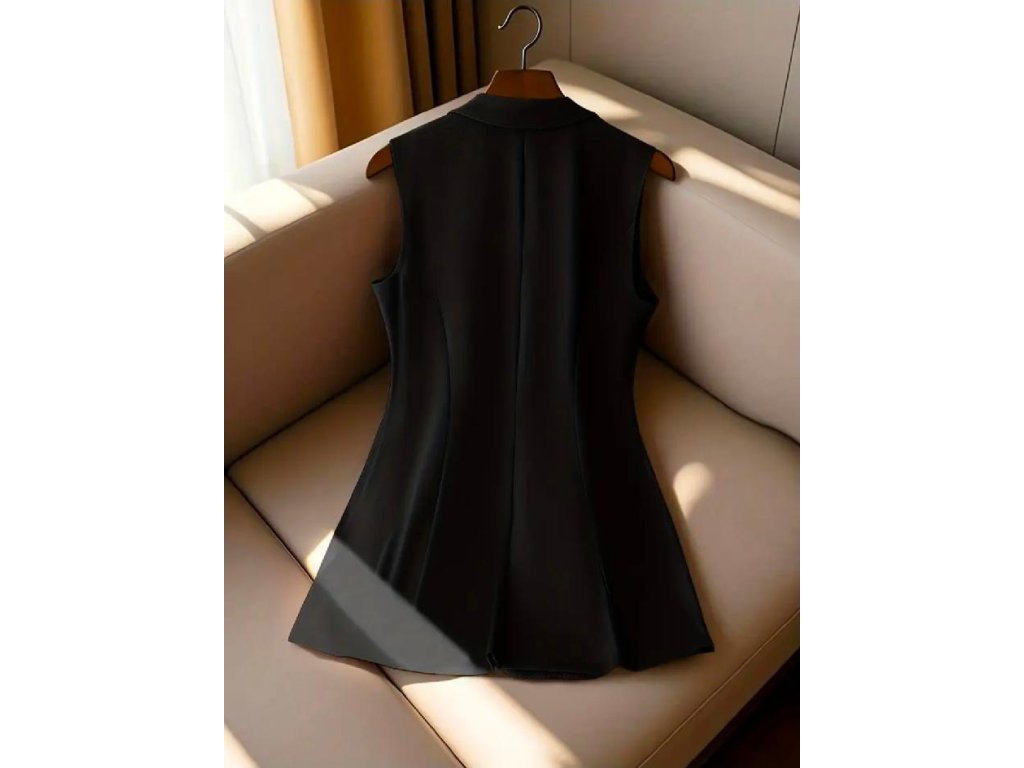 Elegantní dlouhá vesta s klopami – business chic styl
