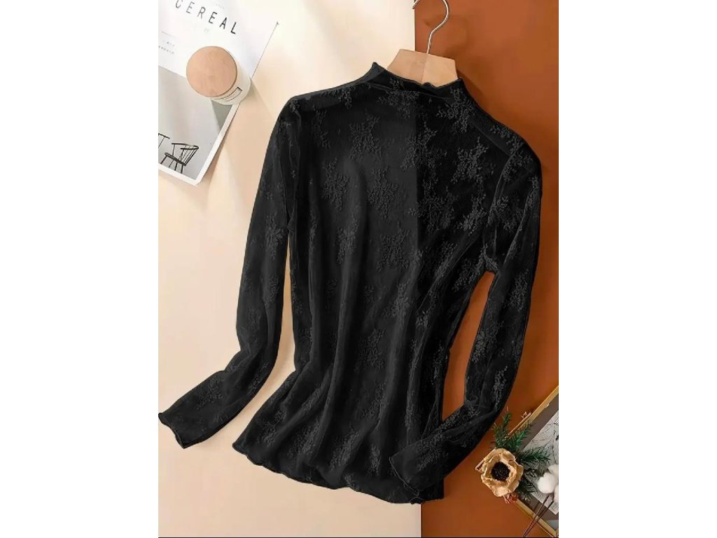 Průsvitná krajka s decentním květinovým vzorem působí ženským a sofistikovaným dojmem, zatímco jednoduchý střih zajišťuje pohodlí při nošení. Skvělé pro vrstvení i samostatné nošení – ideální volba od podzimu až do jara.