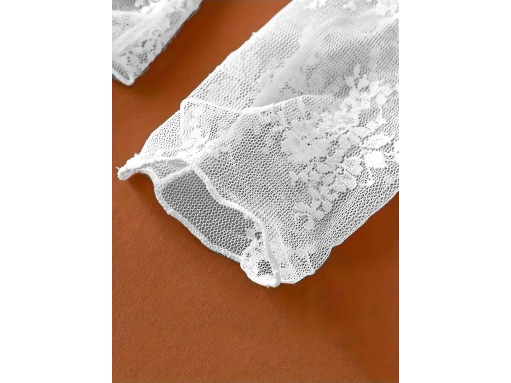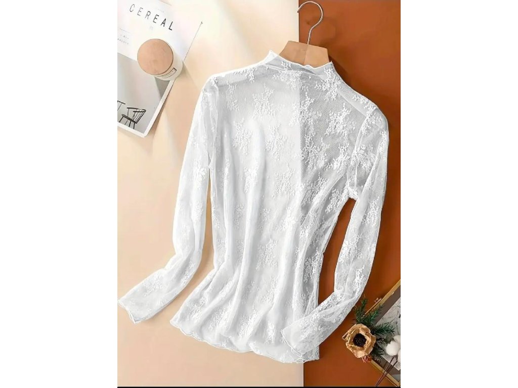 Tričko je vyrobeno z jemné krajkové síťoviny, která působí velmi žensky a elegantně.