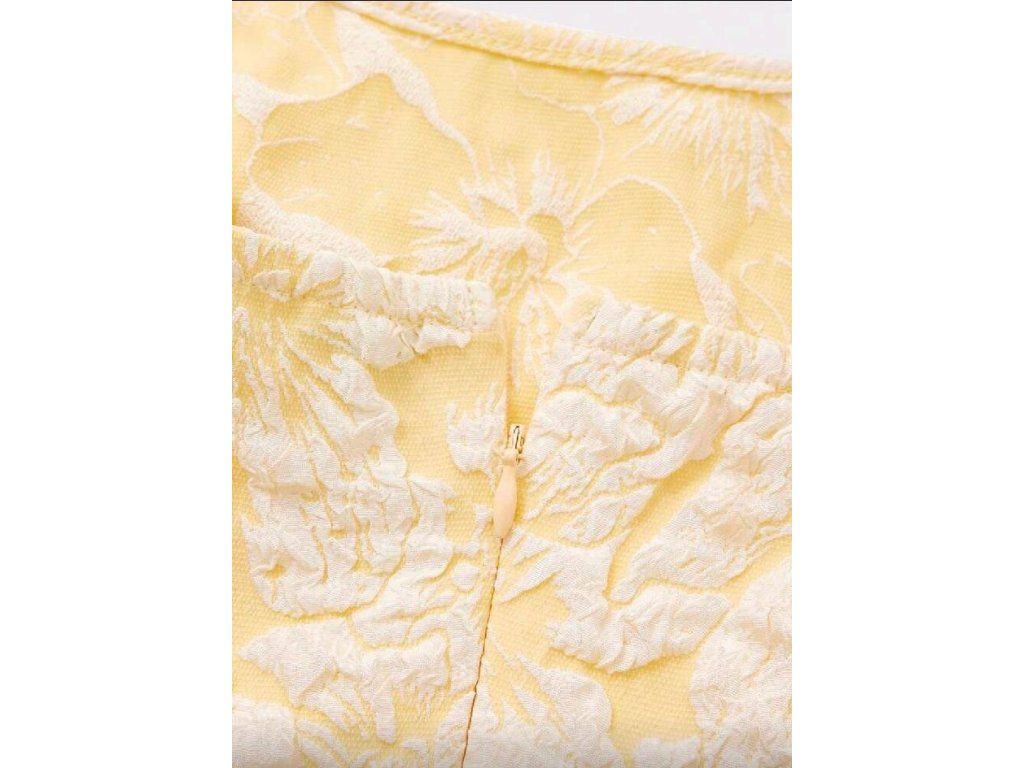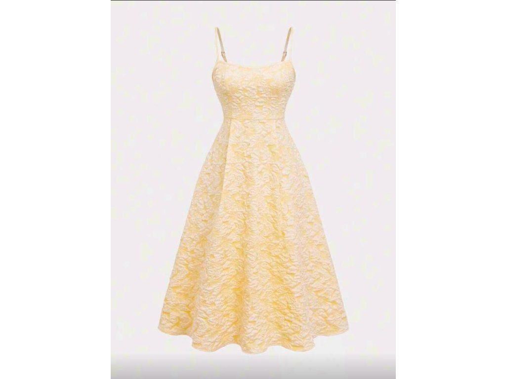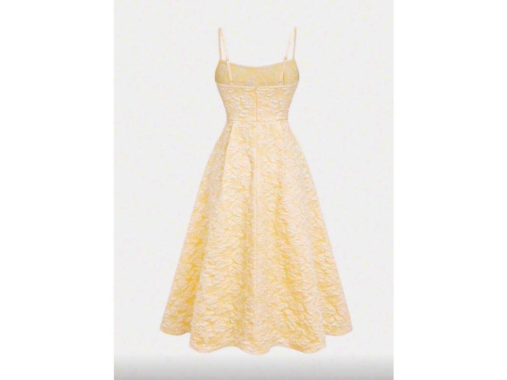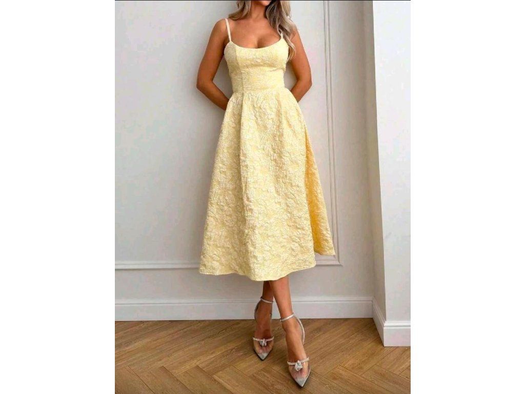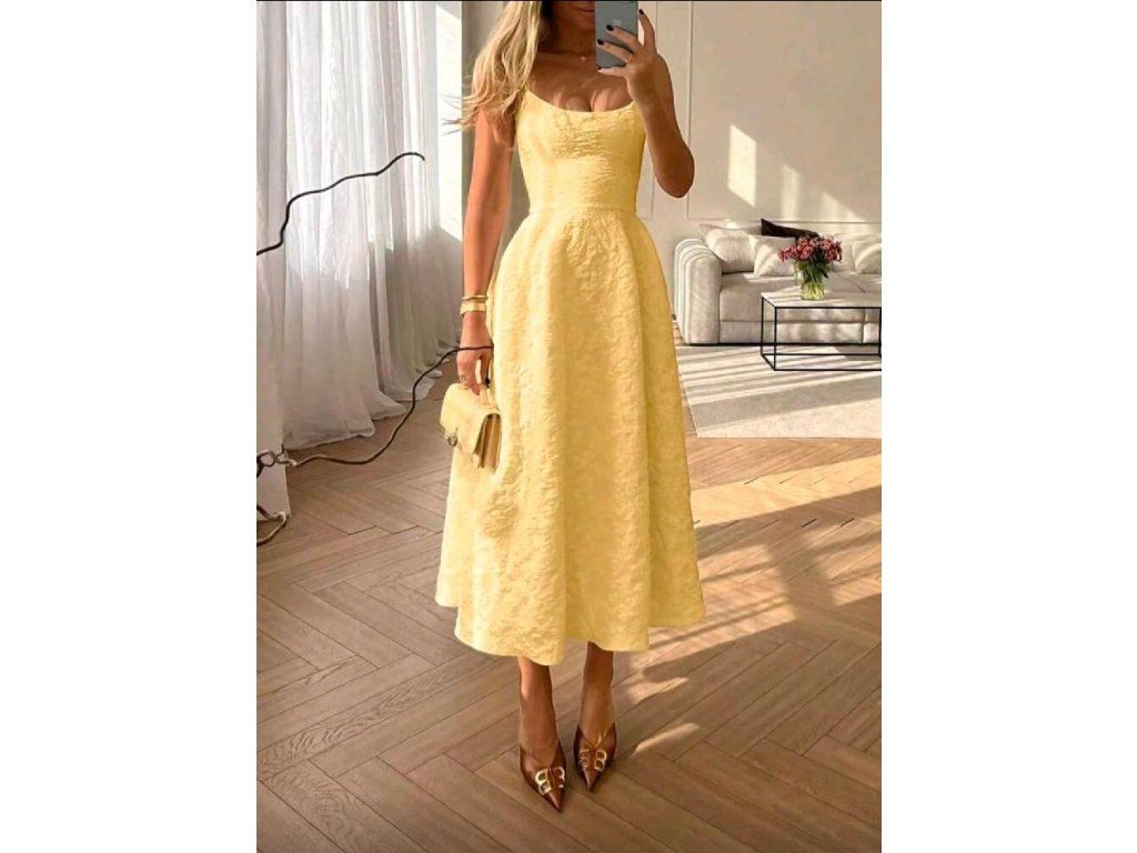 Elegantní midi šaty s reliéfní krajkou – slunečně žluté