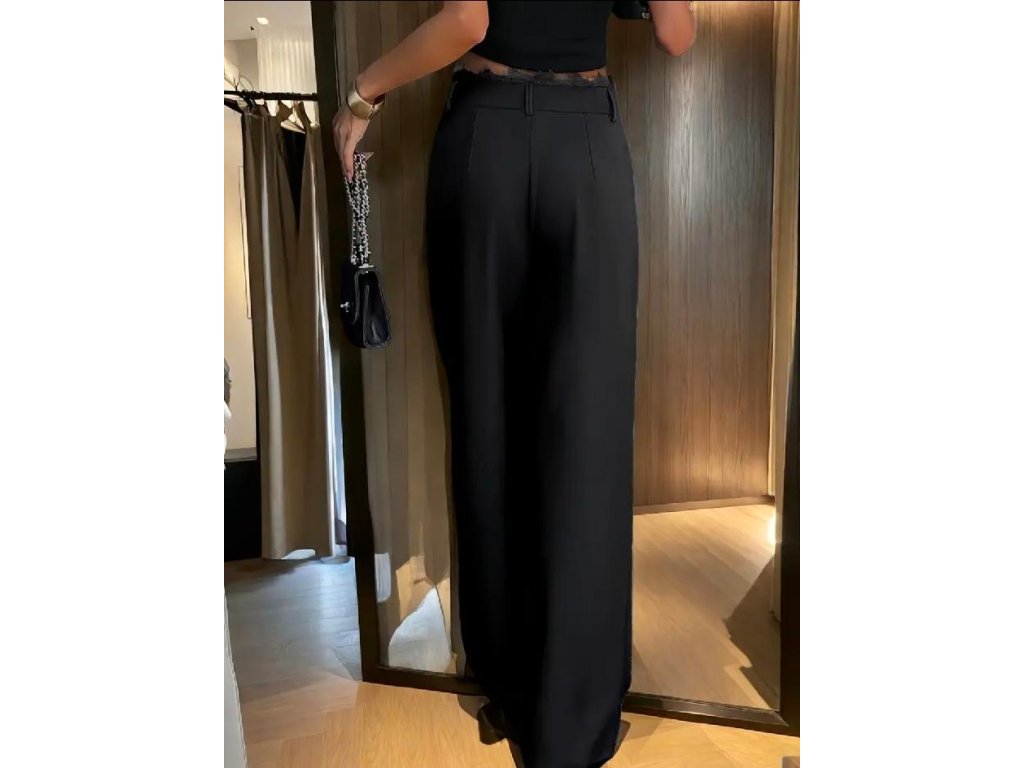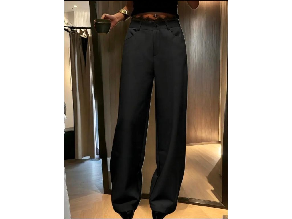 Elegantní černé kalhoty se širokými nohavicemi představují výrazný a zároveň nadčasový kousek pro ženy, které milují sofistikovaný styl. Volný střih krásně prodlužuje siluetu a dodává outfitu lehkost, zatímco jemný krajkový detail v pase přináší nečekaný ženský akcent.