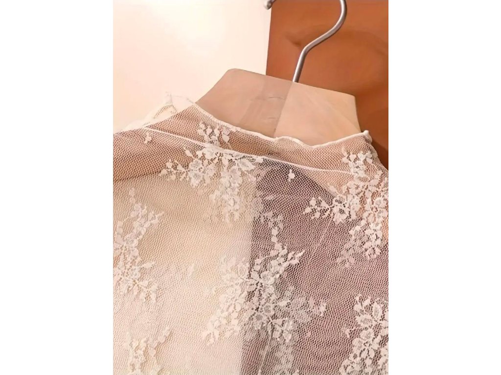 Jemnost, ženskost a elegance v jednom kousku. Tento lehký krajkový top je ideální volbou, pokud chceš dodat outfitu romantický nádech, aniž by působil přehnaně. Průsvitná krajka s decentním vzorem krásně zvýrazní siluetu a působí velmi sofistikovaně.