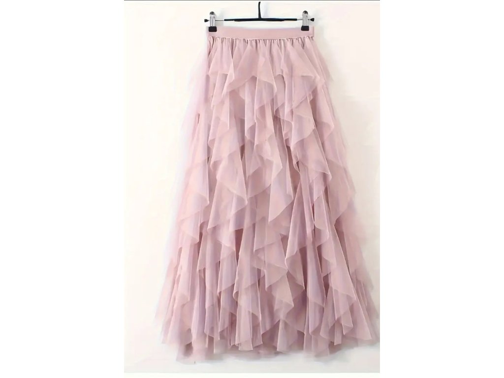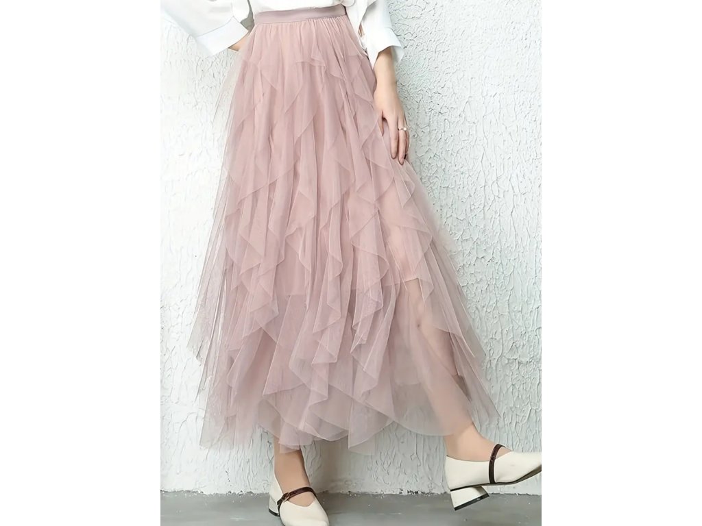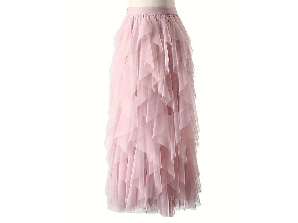 Sukně je vyrobena ze 100% polyesteru, konkrétně z jemné síťoviny (tylu), která působí lehce, vzdušně a velmi elegantně.