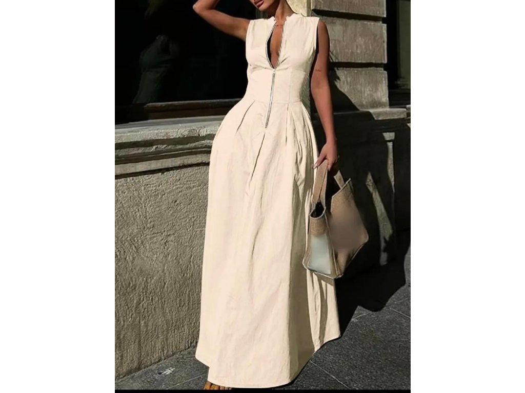 Šaty krémové dlouhé zip