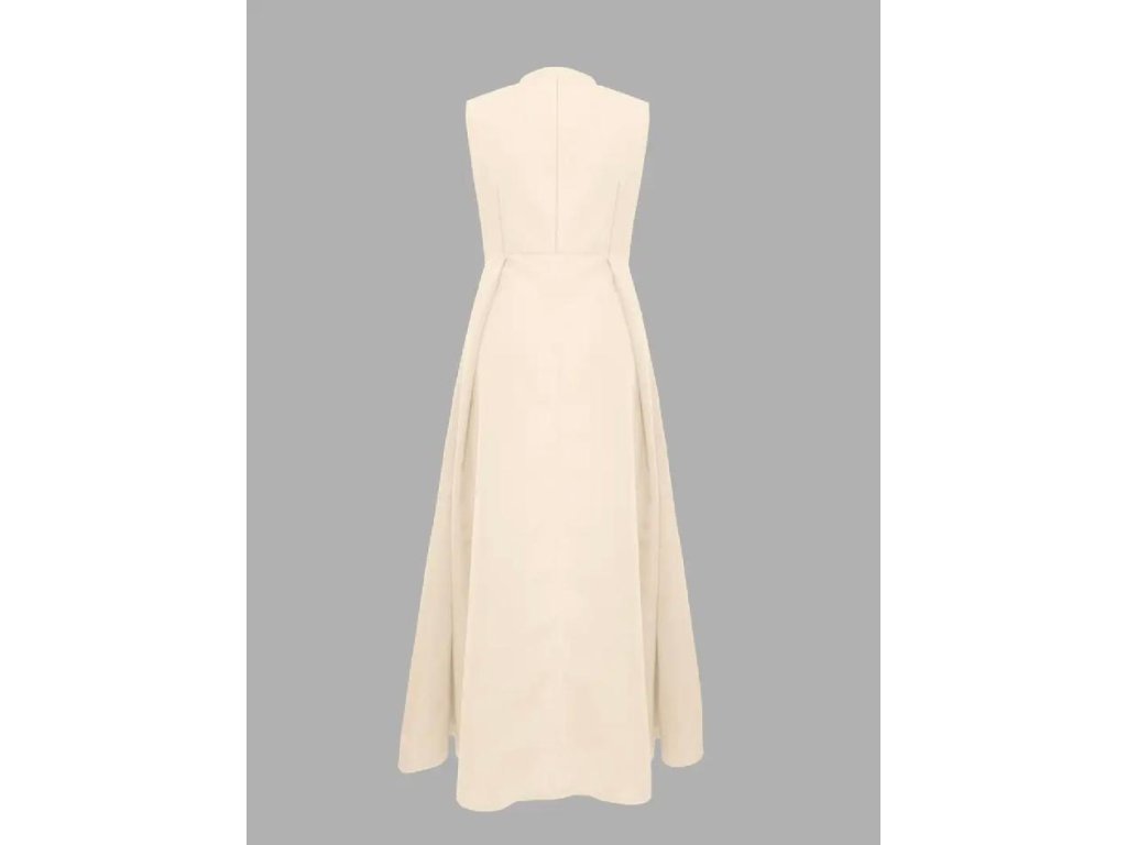 Nadčasové dlouhé šaty v jemném krémovém odstínu, které spojují ženskou eleganci s moderním minimalistickým designem. Přiléhavý živůtek krásně tvaruje postavu, zvýrazňuje pas a plynule přechází do splývavé sukně, která dodává šatům lehkost a noblesu.