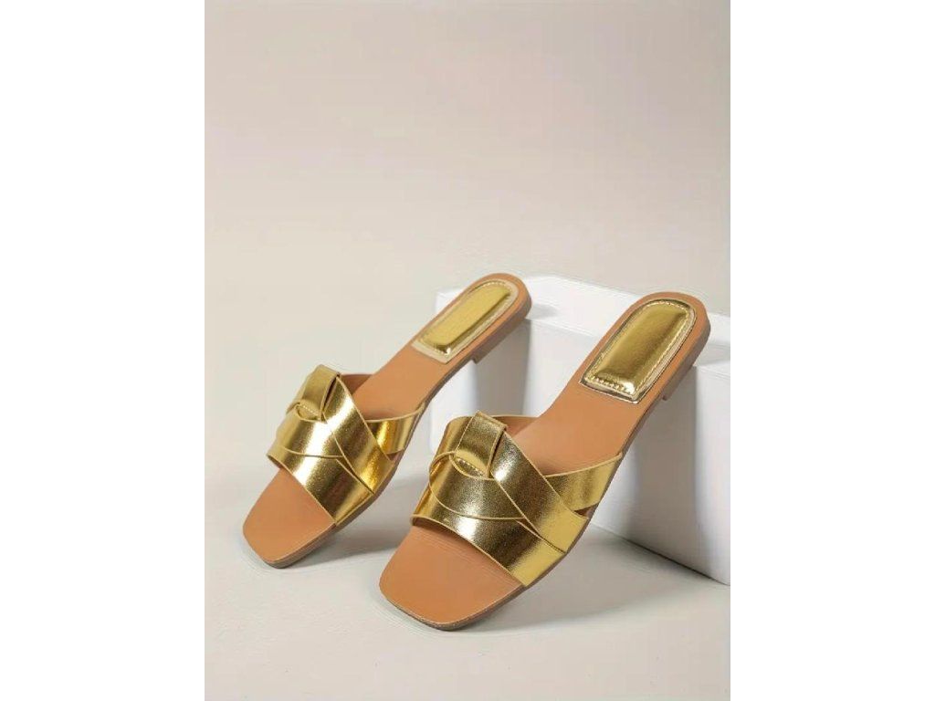 Zlatý lesklý design působí elegantně a stylově – perfektní jak na běžné nošení, tak na letní večery 🌅